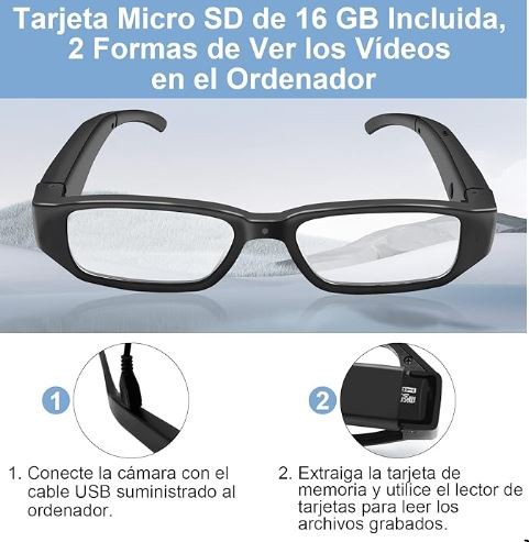 Gafas cámara oculta en una gafa de diseño atractivo con la que podrá grabar video y audio.