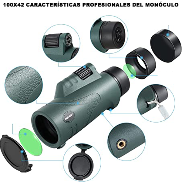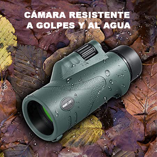 - Agarre antideslizante: Su diseño antideslizante y su carcasa resistente al agua aseguran que el monocular sea duradero y funcional en condiciones climáticas adversas.