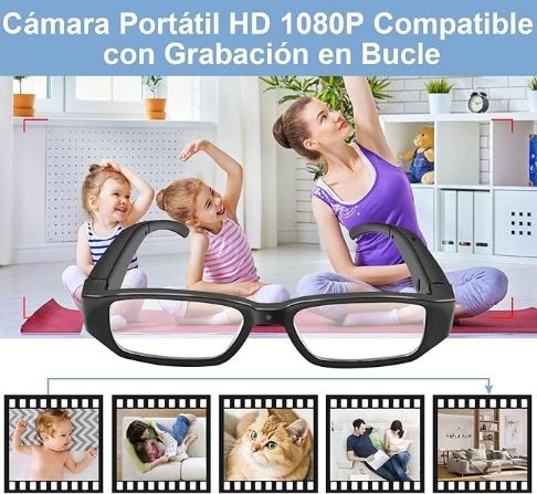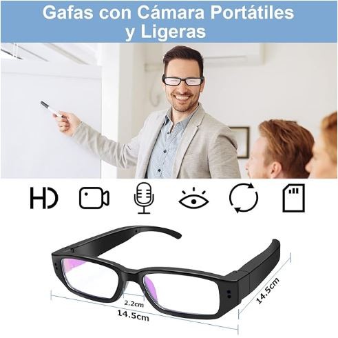 Gafas cámara oculta en una gafa de diseño atractivo con la que podrá grabar video y audio.